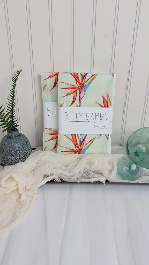 Bird of Paradise Burp Cloth - Tropical Flower Baby Gift - Gender Neutral Newborn Gift for Baby Girl or Boy - Made in Maui Hawaii